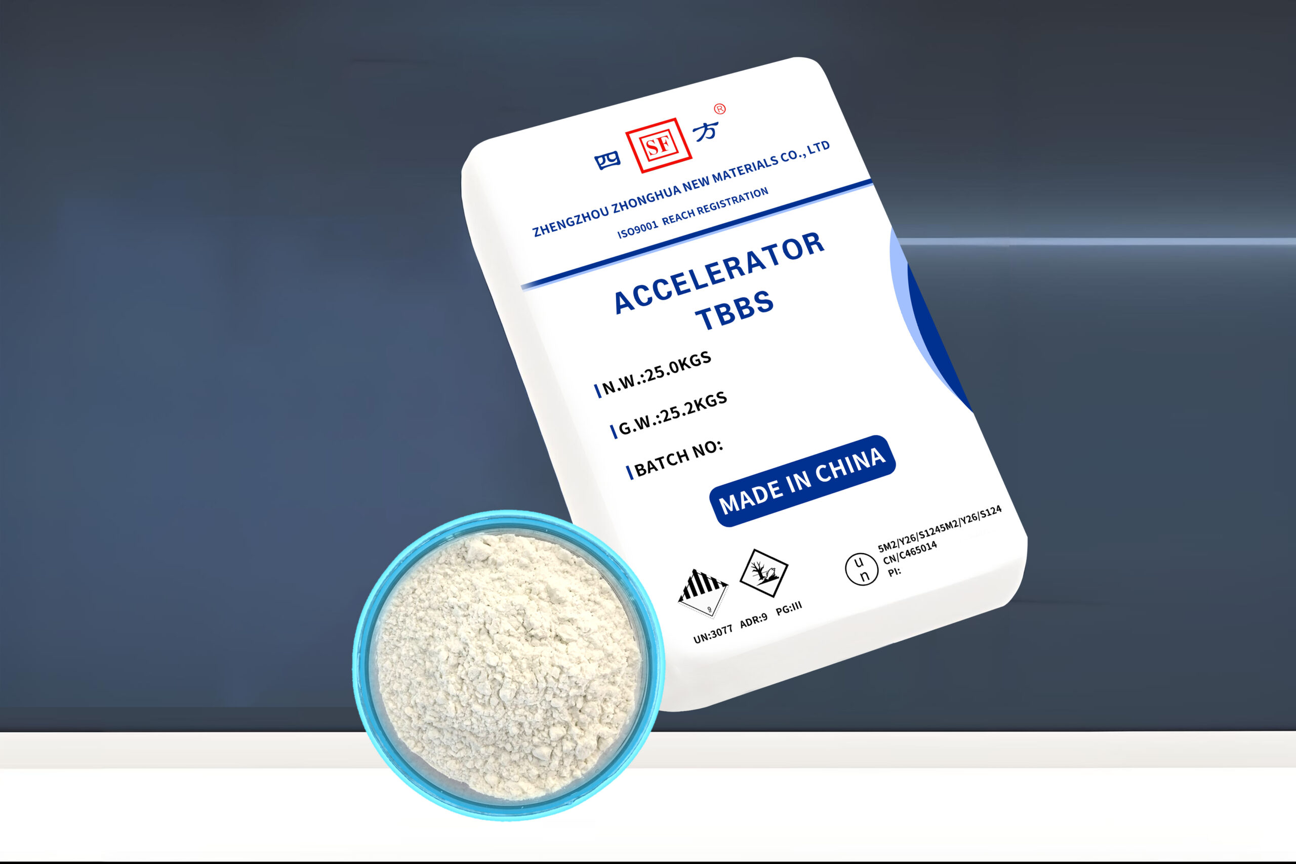 Properties:White granular. The density is 1.26-1.32. soluble in benzene, CS2, methyl alcohol, acetone. chloroform, alcohol, insoluble in gasoline, water, acid and alkali with lower concentration. Application: Provides fast cure rate and high modulus development in NR, SBR, BR and blends. Normally used alone or with small quantities of ultra accelerators in tire compounds or industrial rubber products low poison and high efficiency. It is good back up for NOBS. Be regarded as standard accelerator. Packaging: 25kg plastic woven bag, paper with plastic film bag, kraft paper bag Storage: The product should be stored in the dry and cooling place with good ventilation, avoiding exposure of the packaged product to direct sunlight. The validity is 1 year.